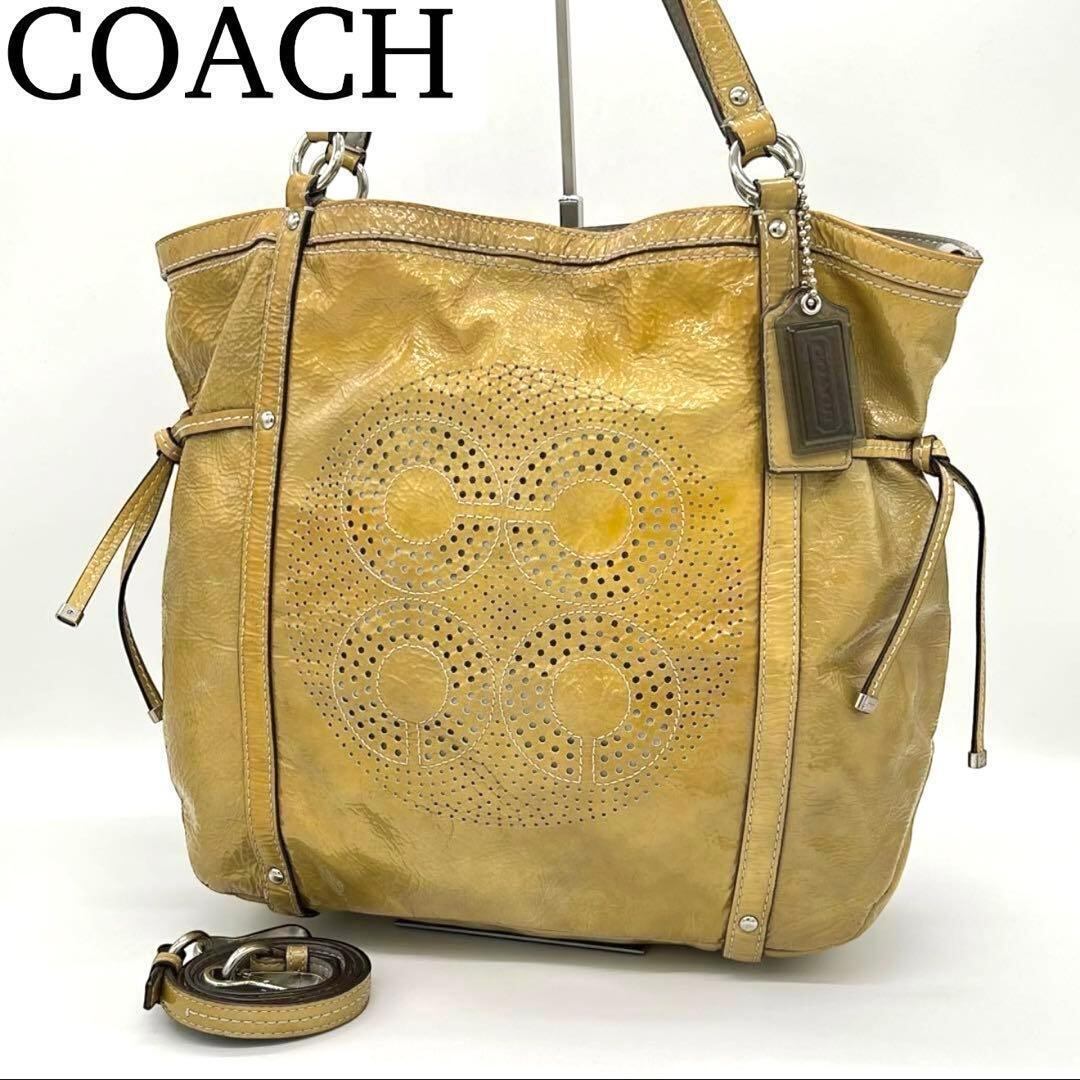 【良品】COACH パテント アンディ シンチド エナメル レディース イエロー