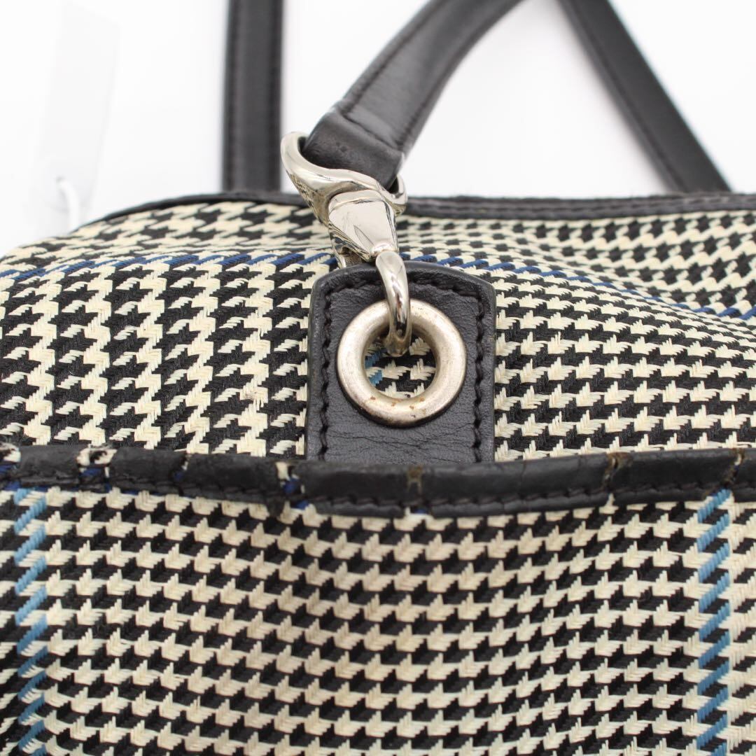 お出かけや旅行時のサブバッグに。千鳥格子柄とレザーが上品で軽量。必要最低限の荷物をすっきり収納でき普段使いにも最適。おしゃれなアクセントとしておすすめです!