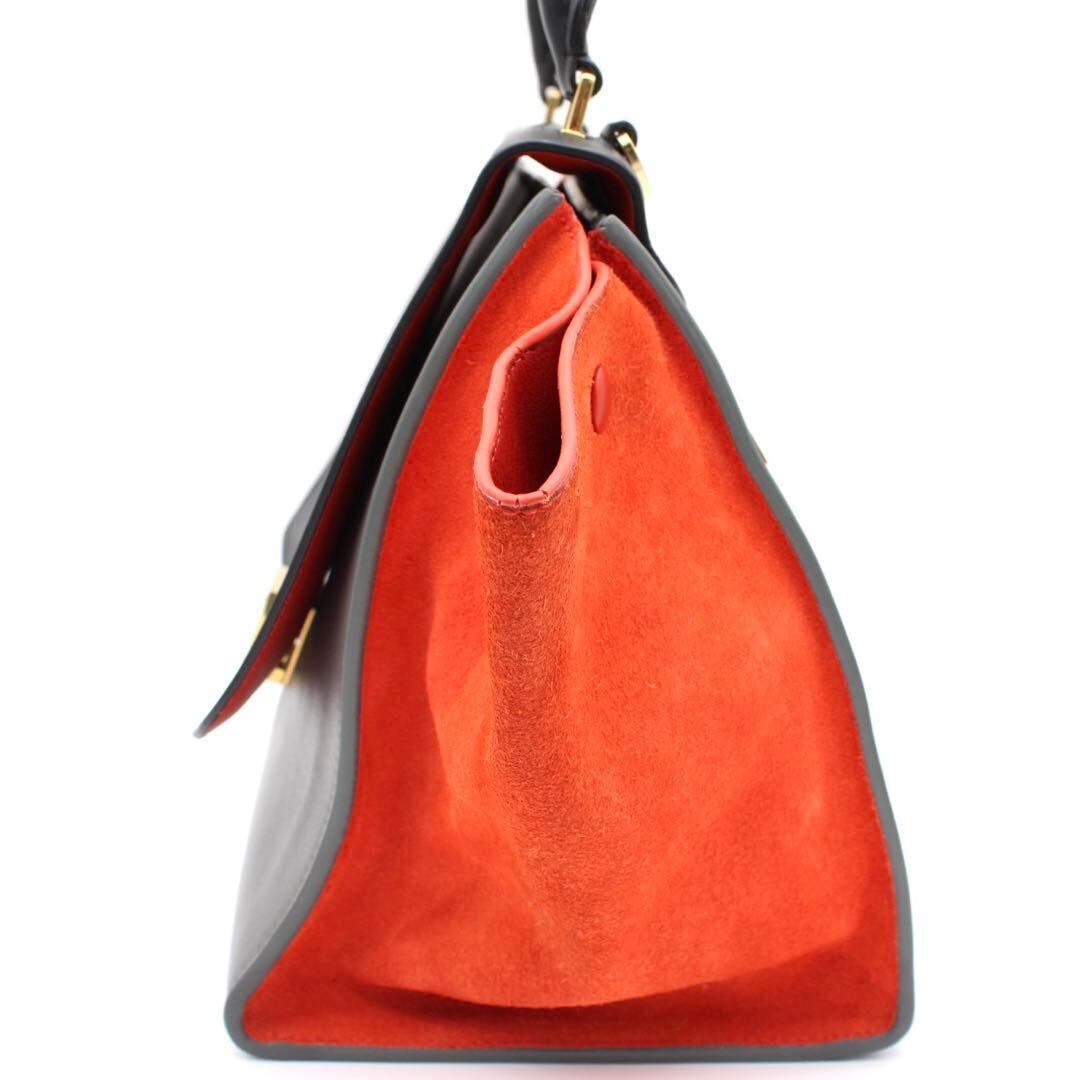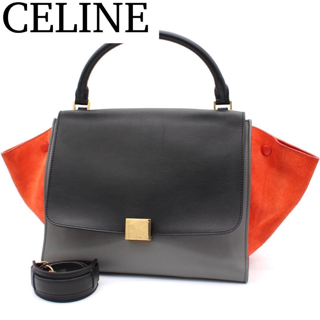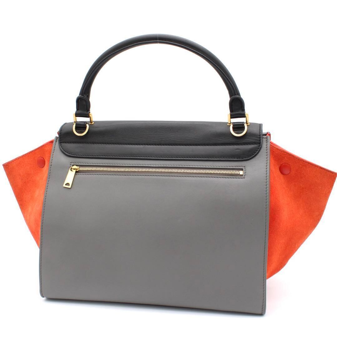 モノトーンに鮮やかなスエードカラーが映えるセリーヌの人気モデル「トラペーズ」。ハンドバッグ・ショルダーの2WAY仕様で、普段使いからお出かけまで幅広く活躍するアイテムです!