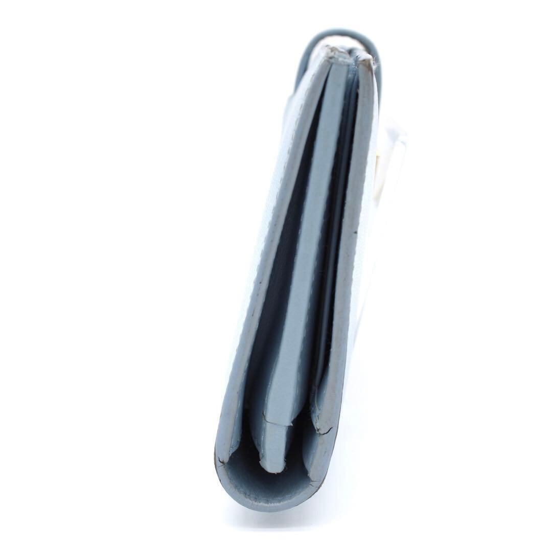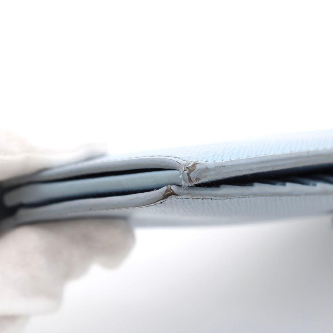 【美品】PRADA 三角ロゴプレート ゴールドプレート 二つ折り財布 レザー 青