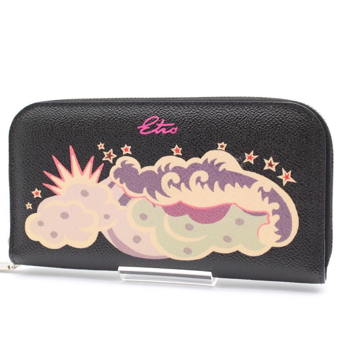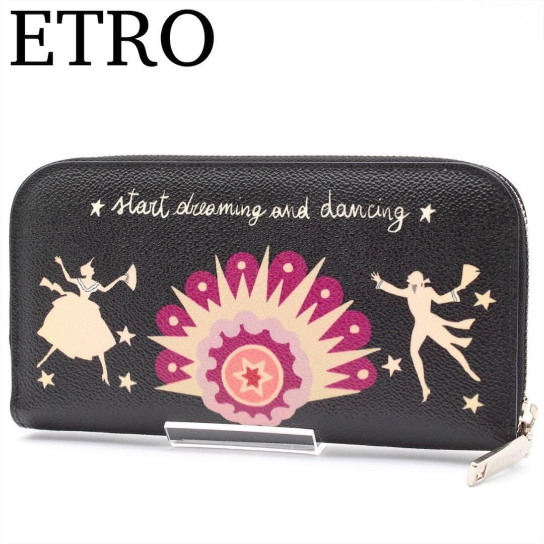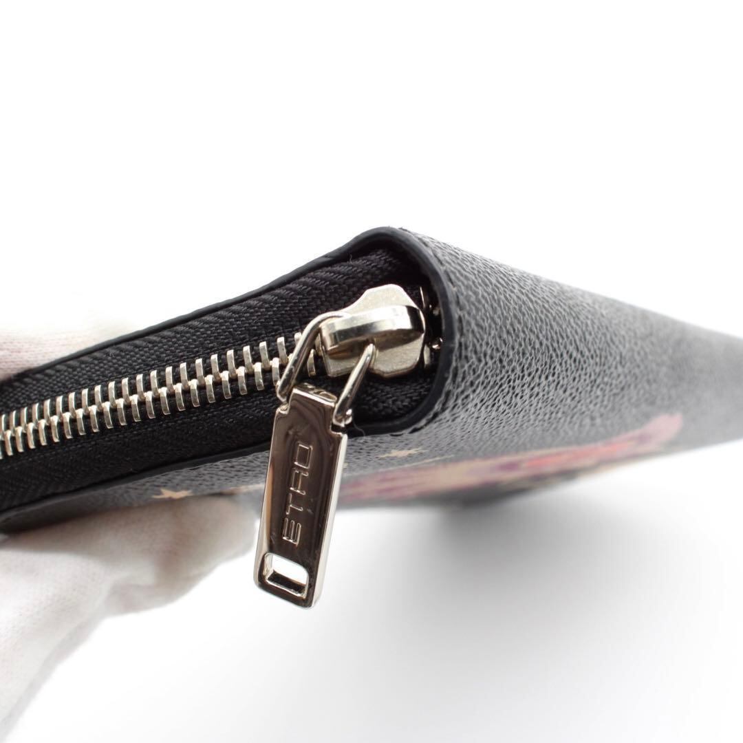 【未使用級】ETRO ラウンドファスナー 長財布 PVC ブラック ロゴ金具